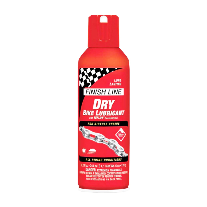 Formula Finish Line Seco Teflón. Suave rapido y eficaz .Aguanta presiones extremas y es resistente al agua. Es un lubricante para cadenas muy versatil, perfecto para todo tipo de condiciones, tanto en carretera como en ciudad o montaña. Tambien se puede usar en cambios, manijas o shifters. Se caracteriza por su calidad superior de penetración, aceites sinteticos de gran duracion y particulas microscopicas de Teflon Du-Pont. Teflon proporciona una gran eficacia de transmision sin atraer demasiada suciedad ! *Presentacion en Aerosol de 244ml